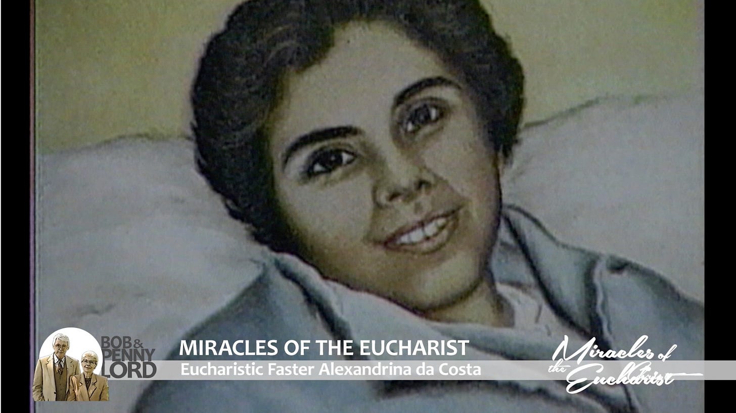 On 27 March 1942, a new phase began for Alexandrina which would continue for 13 years and seven months until her death. She received no nourishment of any kind except the Holy Eucharist, at one point weighing as few as 33 kilos (approximately 73 pounds).