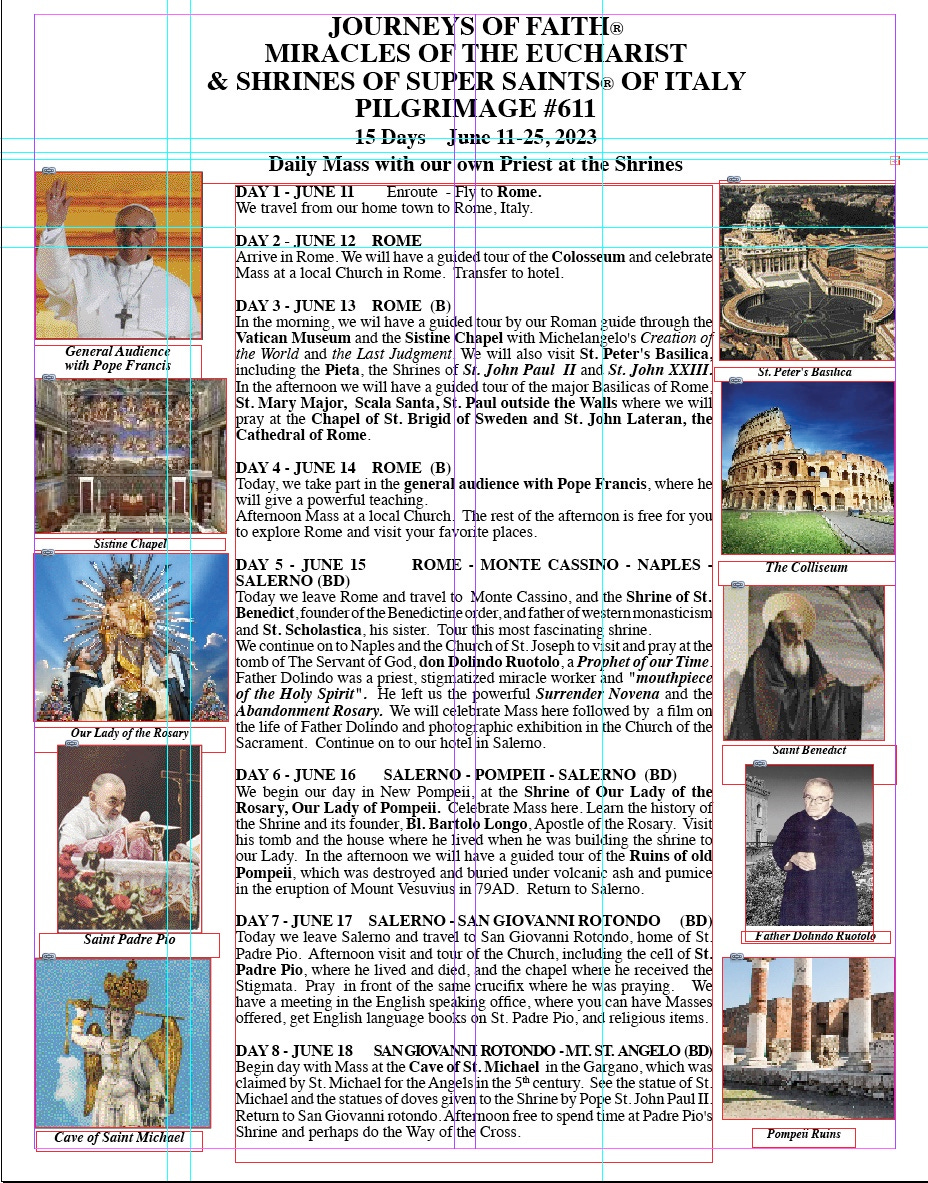 Journeys of Faith Pilgrlmages want you to join us on a 15 day Pilgrlmage to Italy in June.
