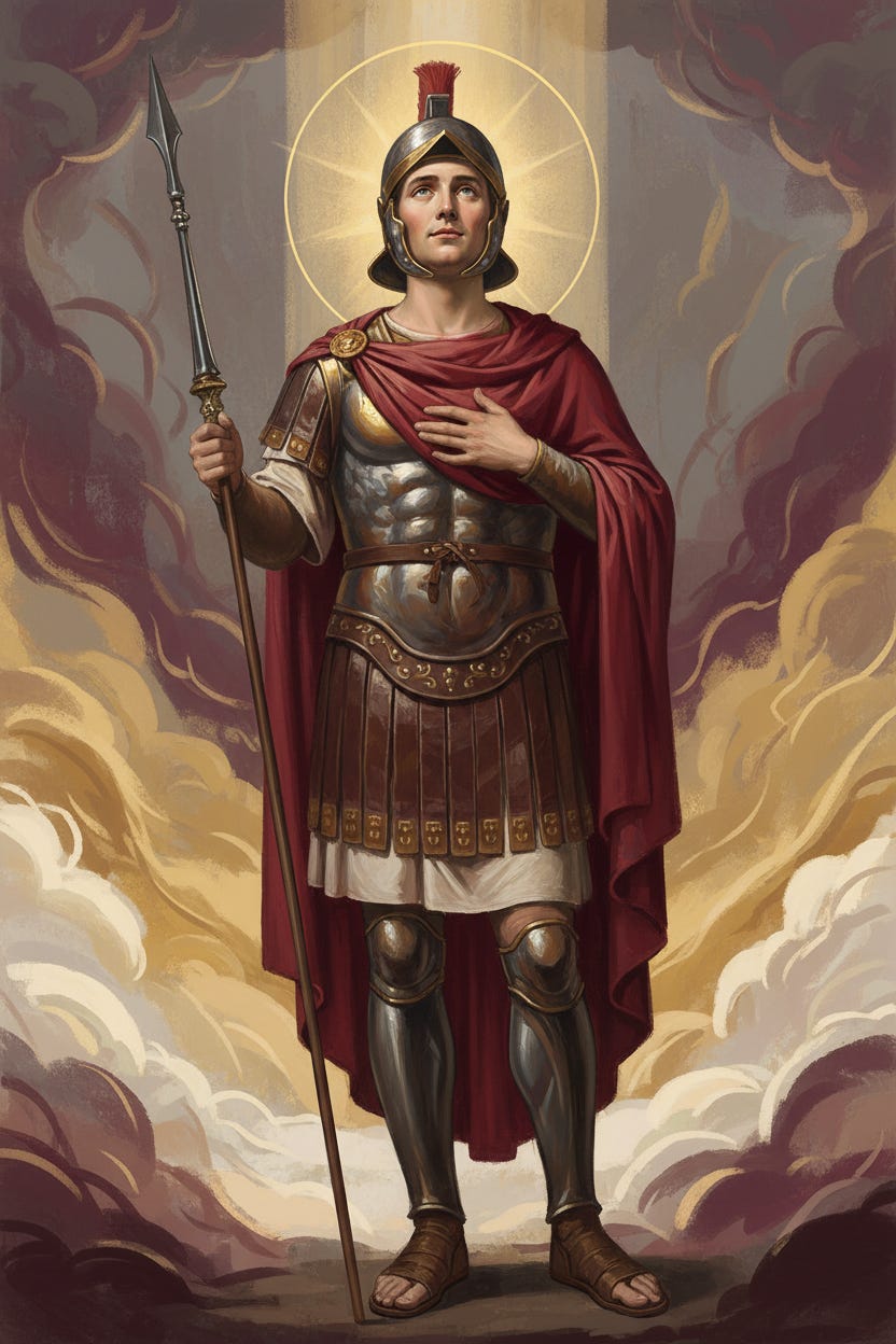 Standing upon Golgotha, a Roman centurion pierced the side of the crucified Christ—blood and water streaming forth, fulfillment of prophecy. It is here, in the moment of sorrow and triumph, that the story of Saint Longinus, the soldier who witnessed the Lord’s final breath, begins. Cloaked in the shadow of empire, Longinus encounters a mystery more powerful than any earthly authority: the wounded Heart of the Savior pouring out mercy for all mankind.